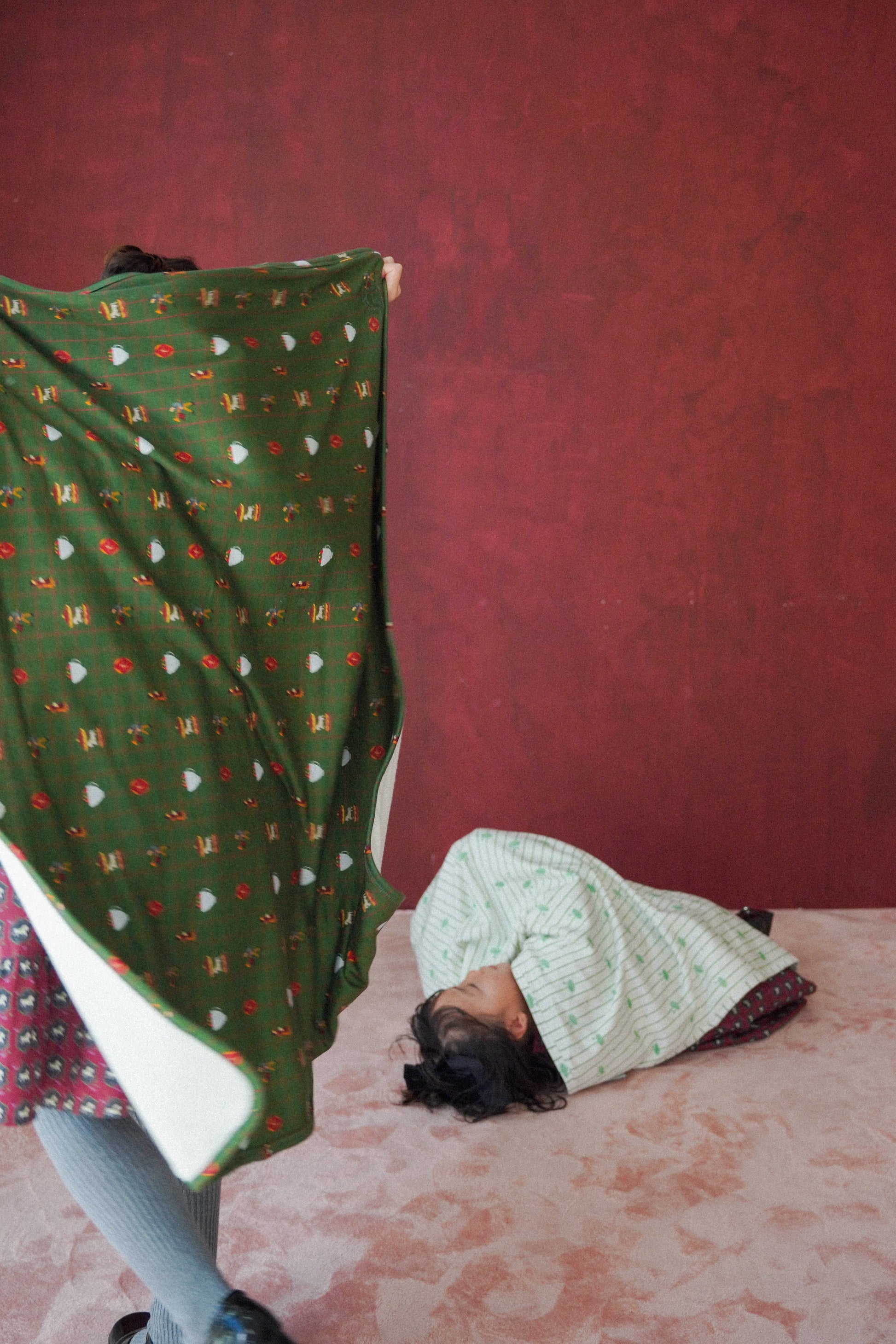 お昼寝時の軽いカバーとしてはもちろん、ベビーカーでのお出かけ時の風よけや、小さなプレイスペースの敷き布としても活躍。程よいサイズ感のため、大人のひざ掛けとしても心地よくお使いいただけます。(オーナーもデスクワーク時に愛用中です。)